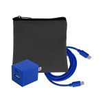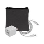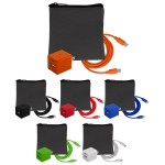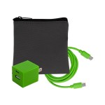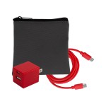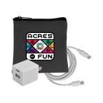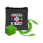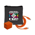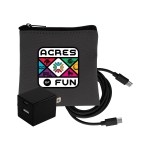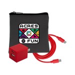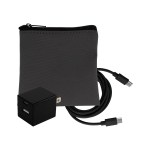 Introducing the sleek and stylish Gray Executive Tech Pouch, crafted from recycled PET for a sustainable touch. Enhance your charging experience with the UL A+C Wall Charger, featuring dual A and C outputs for ultimate convenience. Stay connected with our vibrant 4-foot Type C to Type C charging cable, adding a pop of color to your tech accessories. Elevate your tech game with these high-quality and environmentally friendly products. Complies with CE, cUL, FCC, Prop 65, UL. 4″ L x 4″ H
