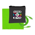 Introducing the sleek Gray Executive Tech Pouch, crafted from recycled PET material for a sustainable and stylish look. Stay connected with our vibrant 4-foot Type C to Type C charging cable, perfect for fast and efficient charging. Keep your devices looking spotless with our colorful 5 x 5 RPET Cleaning Cloth, made from recycled materials for an eco-friendly cleaning solution. Elevate your tech accessories with these high-quality and environmentally conscious products. Complies with CE, Prop 65. 4″ L x 4″ H