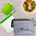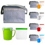 Introducing the sleek and stylish Gray Graph Cooler Bag, featuring a convenient full top opening for easy access. Enjoy your favorite soup on the go with our Soup Mug complete with a comfortable handle. Keep your sandwiches fresh and secure in our Reusable Sandwich Bag, equipped with a reliable zip closure. Elevate your lunchtime experience with these must-have accessories. Complies with Prop 65. 8″ L x 7″ H x 6″ W