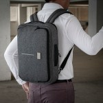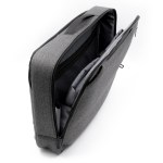 This two-way laptop bag can be carried as a briefcase or backpack. It has an integrated trolley strap and hidden backpack straps. Its flexible and water repellent fabric has padded walls for laptop protection. It is designed for laptops up to 16 and has a handy front pocket and internal document pocket. 17.0″ W x 12.0″ H x 3.0″ D