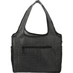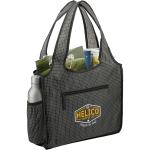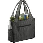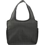 The Grid Bungalow Tote features an open main compartment and a slash front pocket. 4.00″ D x 15.00″ W x 12.00″ H