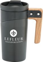 This 16oz ceramic mug features a trendy matte finish and a natural wooden handle with a black-coated stainless steel band. It includes a push-on lid with an easy-to-use slide-lock. The Grotto Ceramic Mug 16oz features up to three logo decoration areas, making it easy to showcase your brand. 3.35″ D x 5.12″ W x 6.60″ H