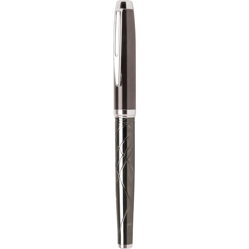 Part of the Cambridge Collection. Jumbo executive pen in high gloss enamel with silver accents & engraving & a gunmetal barrel etched in a contemporary Guilloche engraved design. Pull cap rollerball with supersmooth writing black ink. Cambridge Collection lifetime guarantee. Complies with Prop 65.