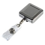 32″ metal square retractable badge reel. The cord is 32″ long. It comes with a metal slip clip backing. Offers a more upscale look for the true professional. Material: Zinc Alloy. Complies with CPSIA, Prop 65. 1 1/4″ W x 1 1/4″ H