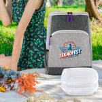 Introducing the Bay Cooler Backpack, designed with a convenient full-top opening for easy access. This innovative backpack includes two practical food storage containers, proudly made in the USA. Stay organized and prepared for any adventure with this high-quality backpack and containers. Complies with FDA, Prop 65. 10.25″ L x 15.5″ H x 5.5″ W