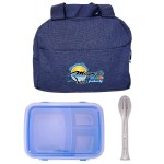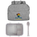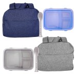 Introducing the convenient Heathered Lunch Cooler, designed to make your lunchtime on-the-go a breeze. This sleek container features a secure clip top closure, ensuring your meal stays fresh and delicious. Complete with a matching fork, knife, and spoon cutlery set, this lunch cooler is the perfect accessory for any busy individual looking to enjoy a homemade meal wherever their day takes them. Complies with FDA, Prop 65. 9.5″ L x 7.25″ H x 4.25″ W