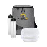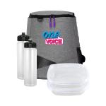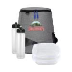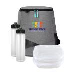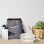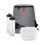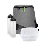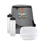 Introducing our eco-friendly Recycled Backpack Cooler, crafted from recycled PET materials. This set includes two sleek Sporty 24 oz. Debossed Bottles with convenient sport squeeze lids, perfect for staying hydrated on the go. Additionally, you’ll receive two Handy food storage containers, proudly made in the USA. Upgrade your outdoor adventures with this sustainable and stylish collection. Complies with FDA, Prop 65. 9″ L x 12″ H x 7″ W