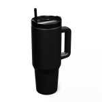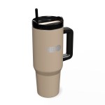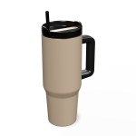 The 1200 mL / 40 oz Happy Camper is a double wall vacuum insulated mug made with pro-grade stainless steel. It features a durable powder coated finish and our TrueTaste ceramic-coated interior which preserves the taste of the stored liquid. Its fitted with a comfort-grip and a narrow base that will fit most cup holders. The lid features a rotating cover which engages the Happy Campers three modes Straw Mode, which holds the included reusable straw, Sip Mode, and Full-Cover mode. 3.937″ L x 10.551″ W x 2.952″ H