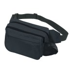 Made Of 600D Polyester. 2 Zippered Compartments, 1 With Inside Organizer Pockets. Front Pocket With Hook And Loop Flap Closure And Outside. Zippered Pocket. Side Mesh Pocket. Adjustable Waist Strap. 46″ Maximum Belt Size. Spot Clean/Air Dry. Complies with Prop 65. 10″ W x 7″ H