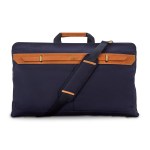Travel in refined style with the Hartmann Reserve Trifold Garment Bag. Made from cotton-twill canvas with full-grain leather accents, it keeps attire wrinkle-free and organized. Features include a pass-through sleeve, padded strap, multiple accessory pockets, and front quick-access storage. Finished with a luxe leather bag tag for personalization-crafted for the modern traveler. Complies with CPSIA, Prop 65. 1.77″ W x 14.96″ H x 24.4″ L