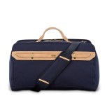 Travel in timeless style with the Hartmann Reserve Weekender Duffel. Crafted from cotton-twill canvas and accented with full-grain aniline leather, it features a spacious interior, easy-access pockets, and a pass-through sleeve for wheeled luggage. A detachable padded strap, leather handles, and stabilizing feet add to its refined functionality. Finished with a premium leather bag tag for a personal touch. Complies with CPSIA, Prop 65. 10″ W x 11.4″ H x 18.9″ L
