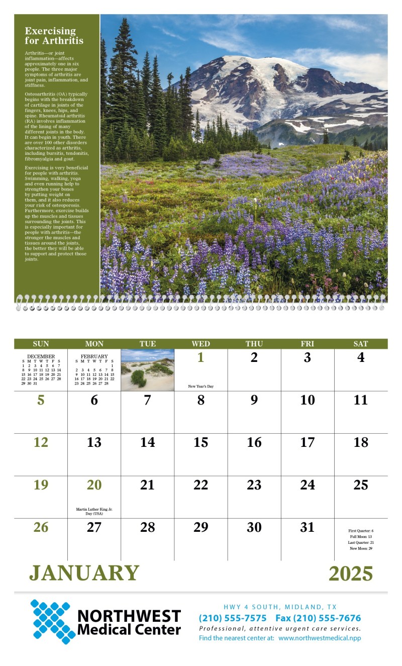 Get your healthy on. Each month you’ll be treated to a beautiful landscape image and a tip for improving your health. The FSC® label means that the materials used for this product come from well-managed FSC®-certified forests and other controlled sources.