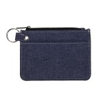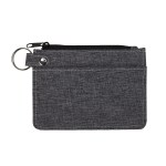 Features top zippered compartment for cash, front pocket for credit cards and ID split ring attachment for keys. 3 5/8″ H x 4 7/8″ W