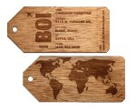 Wooden luggage tags are beautiful, simple, functional, and cost effective. Made from formaldehyde free American Birch Plywood or Cherry; And covered in real wood veneer. Laser engraved with logos, names, titles or award text. Handcrafted in Hidden Springs, Idaho. 100% Made in USA. Includes PU Leather Buckle Strap or Stainless Ring. Custom Shapes Available. Complies with Prop 65. 5.25″ W x 2.5″ H x 0.25″ Thick