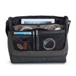 If you want to conveniently carry around your computer and other essentials, look no further than this Heritage Supply (TM) tanner computer messenger bag! Available in black or charcoal heather, this trendy bag features a padded compartment that can hold laptops up to 15′. It also has an adjustable shoulder strap, an interior pocket that can fit a 10′ tablet, a front zippered pocket on the front flap, a side utility loop, a side water bottle pocket, top grab handles and a trolley strap. Complies with CPSIA, Prop 65. 5″ W x 12.5″ H x 16.5″ L