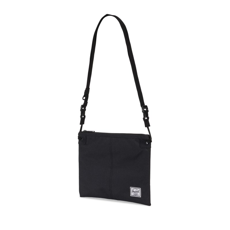 The versatile Herschel Adler crossbody features a clip-fastened strap allowing it to be carried as a clutch or used to keep items organized within your bag. It also has a signature striped fabric liner, internal mesh storage sleeve, and zippered main compartment closure. 0.01″ D x 11.00″ W x 8.50″ H