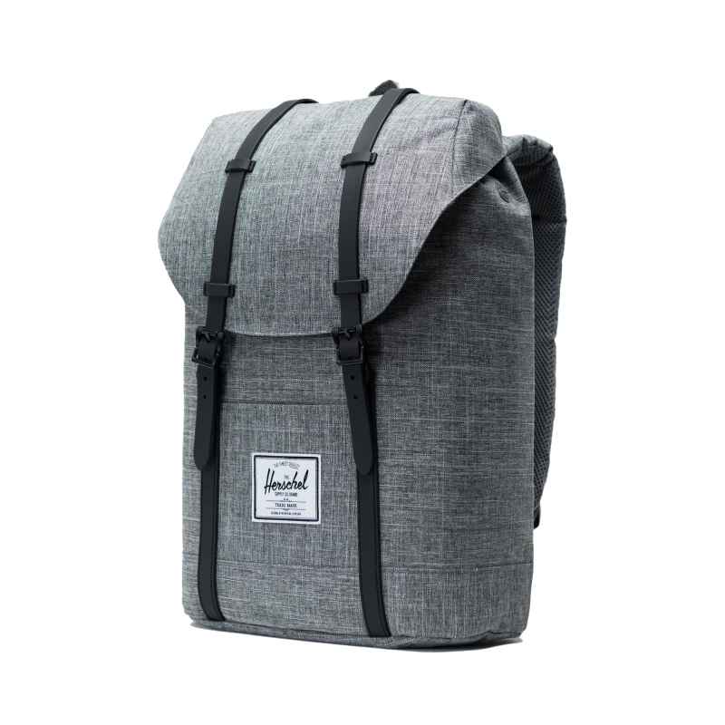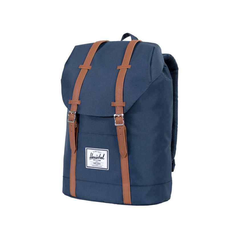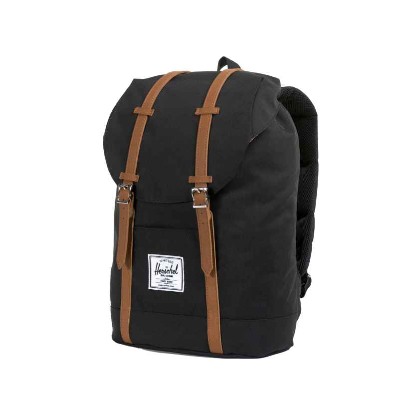 Herschel Retreat Backpack: The Herschel Retreat Backpack is a streamlined rendition of a timeless mountaineering style, featuring a drawcord cinch closure and a strap detailed top flap. 6.00″ D x 12.00″ W x 17.00″ H