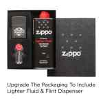 A staple of the ZIPPO® product line with a perfectly smooth high-polish black finish that makes it versatile for imprinting. Backed by Zippo’s Lifetime Guarantee. Made in USA. Packaged in a gift box. Lighter fluid not included due to shipping restrictions. Packaging that includes lighter fluid is available with an upcharge. 0.5″ H x 1.5″ W x 2.25″ L