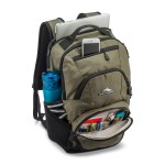 The High Sierra(R) Swoop SG Laptop Backpack is built for bold, organized, on-the-go living. Featuring 360° reflectivity for added visibility, it offers a spacious main compartment, cascading external pockets, and dedicated tech storage-including a Laptop Hammock(TM) for up to 17″ laptops and a tablet sleeve. With airmesh-padded straps, fleece-lined phone/sunglasses pocket, and dual bottle holders, it’s comfort meets function. PVC-free and perfect for daily commutes or campus life. Complies with CPSIA, Prop 65. 5.91″ W x 18.9″ H x 11.02″ L