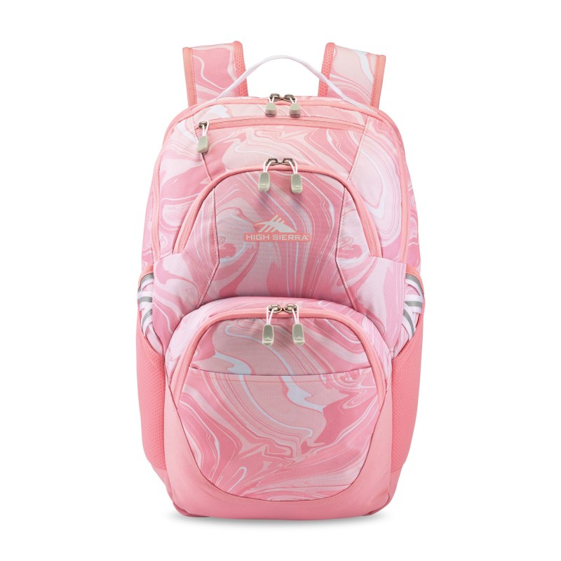The High Sierra(R) Swoop SG Laptop Backpack is built for bold, organized, on-the-go living. Featuring 360° reflectivity for added visibility, it offers a spacious main compartment, cascading external pockets, and dedicated tech storage-including a Laptop Hammock(TM) for up to 17″ laptops and a tablet sleeve. With airmesh-padded straps, fleece-lined phone/sunglasses pocket, and dual bottle holders, it’s comfort meets function. PVC-free and perfect for daily commutes or campus life. Complies with CPSIA, Prop 65. 5.91″ W x 18.9″ H x 11.02″ L