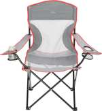 This High Sierra® Camping Chair supports up to 300lb capacity. Its lightweight style is durable and sporty. This camping chair’s breathable mesh fabric will dry fast in the event of an unexpected rainfall. Each armrest has an integrated cup holder. This lightweight portable camping chair easily folds into a High Sierra® carrying case with shoulder strap. 35.00″ D x 21.00″ W x 33.00″ H