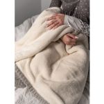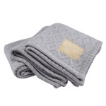 This cozy knit blanket turns a house into a home. Perfect for bundling up in the cold winter months, it will be your new favorite. A nylon/wool blend gray knit on one side, with faux polyester lambswool on reverse. 510 GSM Fabric / 250 GSM Sherpa. 50.0″ W x 60.0″ H x 0.01″ D