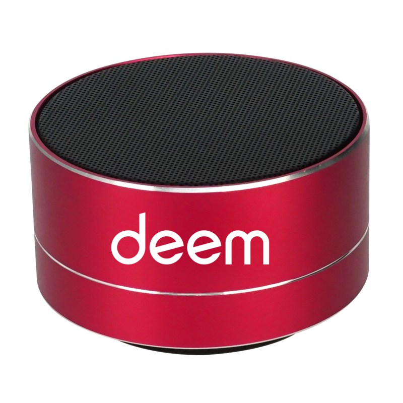 Round metal Bluetooth speaker connects to most Bluetooth devices. Two of these speakers can pair with each other for stereo effect. Includes USB charging cable and rechargeable battery. Please note: Bluetooth are considered hazardous material, some restrictions may apply. Complies with Prop 65. 2.75″ D x 1.625″ H