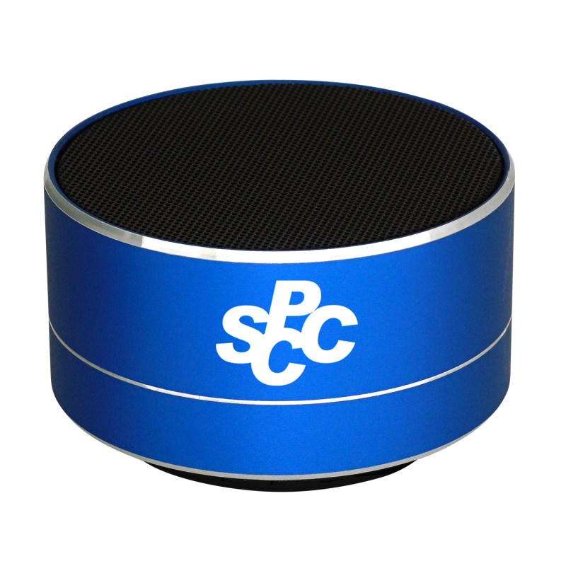 Round metal Bluetooth speaker connects to most Bluetooth devices. Two of these speakers can pair with each other for stereo effect. Includes USB charging cable and rechargeable battery. Please note: Bluetooth items are considered hazardous material, some restrictions may apply. Complies with Prop 65. 2.75″ D x 1.625″ H