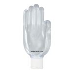 Howdy-Tizer is a 2.5-ounce hand-shaped sanitizer bottle with a colorful top. 4.75″ H