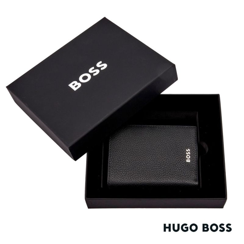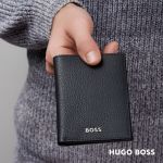 The Hugo BossĀ® Classic Grained Folding Card Holder is characterized by carefully chosen top-grain leather and minimalist design. This card holder is skillfully assembled and beautifully finished with crisp chrome signature plats and monogram lining. This Compact card holder includes: 2 currency compartments 8 card slots 2 side compartmentsProduct Size: 3.15″ W x 0.47″ H x 4.3″ D. 3.15″ W x 0.47″ H x 4.3″ D