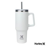 Whether you’re a wave watcher or a wave rider, the totally awesome Hurley Oasis Travel Mug is the perfect choice for hot or cold beverages. Made of food-grade 18/8 stainless steel, its double wall vacuum insulated construction and copper lining provide extra temperature retention to keep your drink cold for at least 30 hours and your hot drink hot for up to 12 hours. This mug offers a large 40 oz. capacity for fewer refills and the large side handle makes it easy to grip. The lid features 3-in-1 functionality for sipping, swigging or slurping and the included straw fits snuggly into the silicone opening and is designed to resist splashes. The Oasis has a narrow base that will fit in most standard car cup holders and its durable powder coated finish helps prevent surface scratches. FDA compliant and BPA Free. Complies with Prop 65. 6″ W x 11 3/4″ H x 4 5/16″ D