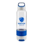 Constructed of clear Tritan™ material. Screw-on lid with wide mouth opening. Cooling towel in separate compartment matches accent color. Built-in phone stand for easy viewing. Meets FDA requirements. Hand wash recommended. BPA free. 10″ H x 2 1/2″ W