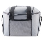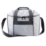 Ideal for tailgating, picnics, camping, beach events, this new Ice River 24-30 can cooler bag has contrasting piping, D-shaped wrapped webbing handles and adjustable shoulder straps. This water-resistant, FDA grade cooler is made with 420D polyester outer and PEVA interior with 12mm foam insulation connected by a nylon zipper. It has a large front pocket, a back panel mech pocket, and an inside top snack pocket. 13.5″ W x 9.75″ H x 9.0″ D