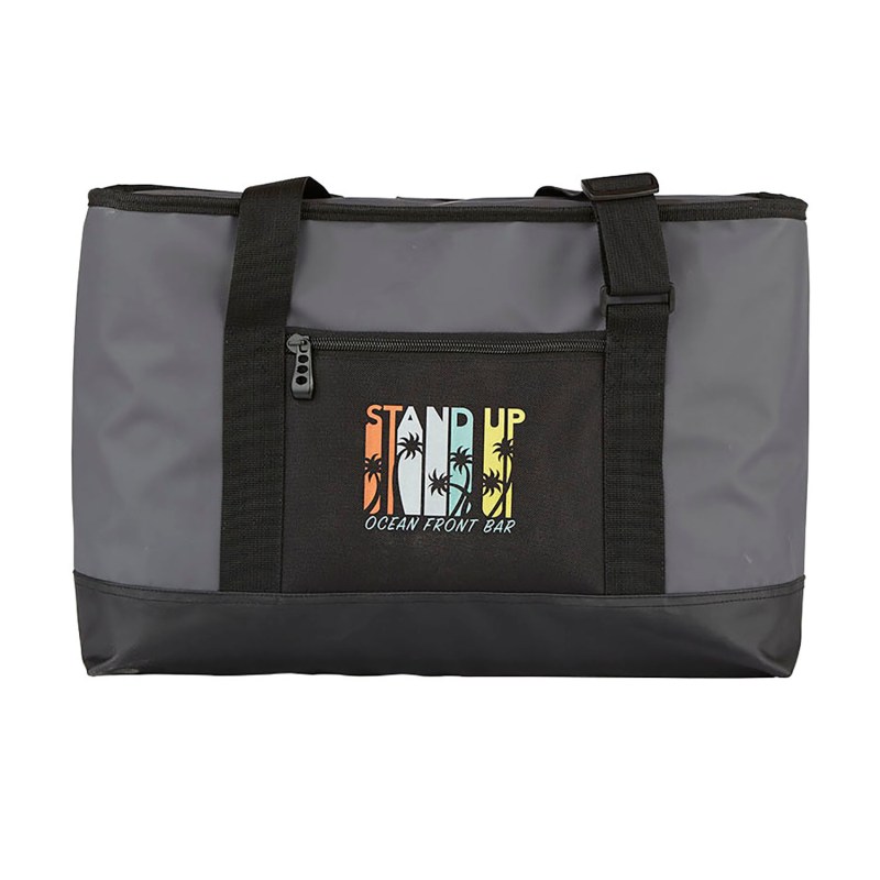 The proven performance of the Ice River brand combined with the style of a tote bag creates a large cooler that is easy to carry and stylish too. This cooler bag features 1680D Polyester PVC Coating, a waterproof PU Zipper, a handy front panel zippered pocket, and polypropylene webbing strap handles. 18.0″ W x 11.5″ H x 6.0″ D