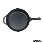 The iCOOL Anchorage 10 Cast Iron Skillet / Frying Pan is designed for everyday versatility and dependable performance in the kitchen. Featuring a naturally pre-seasoned cooking surface, it delivers excellent heat retention and even cooking for everything from searing to sauting. Convenient side pour spouts allow for easy, mess-free draining, while the removable silicone handle provides added comfort and heat protection during use. With an 8 1/2″ interior cooking diameter, this frying pan offers ample space for preparing meals with confidence and control. A portion of all proceeds is donated to Shelter to Soldier, a non-profit organization that rescues dogs to train as service animals for veterans in need. Complies with Prop 65. 16 1/4″ W x 2 1/4″ H x 10 3/4″ D