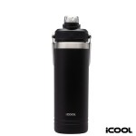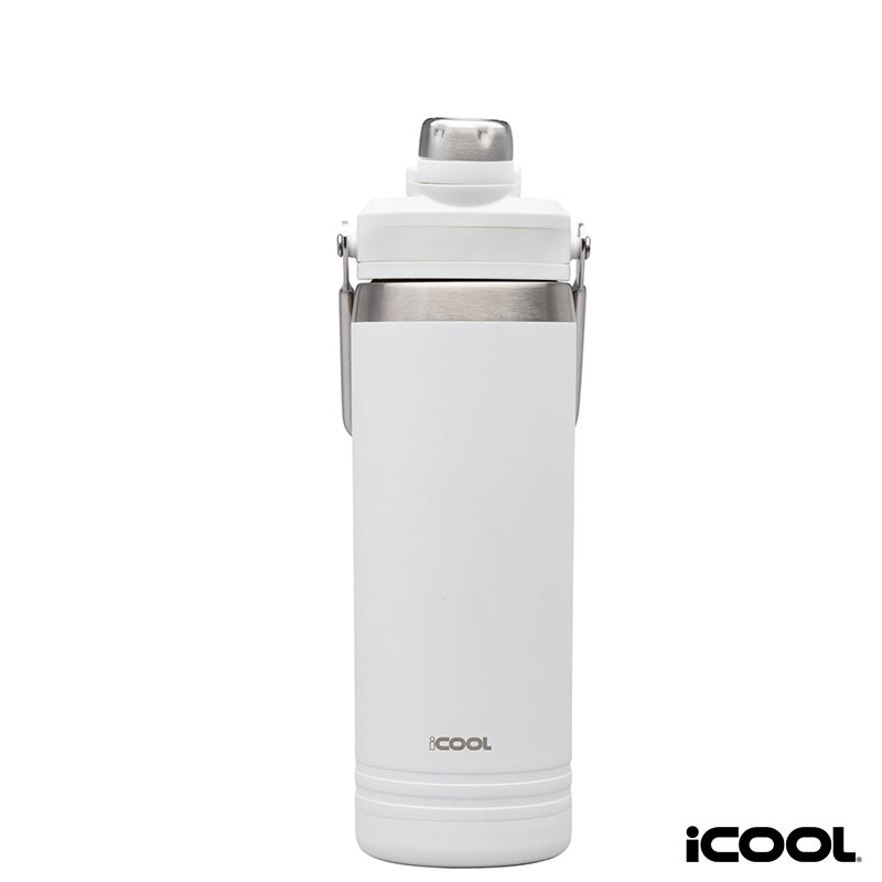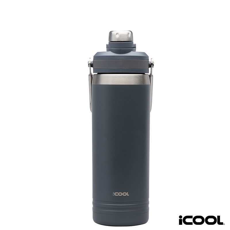 The iCOOL Lakewood 24 oz. Stainless Steel Bottle is a dream come true for campers and outdoor lovers. The bottle features durable double wall vacuum insulated construction with an 18/8 inner wall to keep drinks hot for 12 hours and cold for 24 hours. The swing handle makes carrying or hanging this bottle easy, and its TPR soft grip pad provides your hand a comfortable touch. The 3-way functionally designed lid will satisfy every user’s drinking preference with its sipper spout with straw, threa. Complies with Prop 65. 3 3/4″ W x 10 1/4″ H x 3 3/4″ D