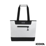 The iCOOL Vail 30-Can Cooler Tote Bag is perfect for family picnics at the park, road trips or all day beach parties. Crafted with water-resistant tarpaulin exterior, and featuring a roomy interior lined with thick foam insulation and heat-sealed PEVA, it keeps your snacks and drinks fresh. Complete with a front zippered pocket, and sturdy reinforced carry handles, it’s the ideal choice for your next outing. A portion of all proceeds is donated to Shelter to Soldier, a non-profit organization that rescues dogs to train as service animals for veterans in need. Complies with Prop 65. 15 1/2″ W x 13 1/2″ H x 6 1/4″ D