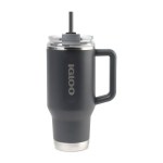 Big sips, better durability. The Igloo(R) Travel Tumbler 32 oz is crafted from 90% recycled stainless steel with double-wall vacuum insulation and copper lining for lasting temperature control. A flip n’ sip leak-resistant lid, built-in coaster, and side handle add convenience, while the dual-threaded design suits left- or right-handed use. Includes 2-piece straw and fits most cup holders. Complies with CPSIA, Prop 65. 3.94″ W x 9.65″ H x 5.79″ L