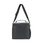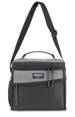 Dual zippered opening to main compartment. Side mesh pocket for water bottle and other belongings. Front zippered pocket for additional storage. Adjustable shoulder strap. Top grab handle. PVC free. Phthalate free. 14 can capacity. Complies with CPSIA, Prop 65. 8.25″ W x 8.75″ H x 10″ L