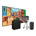 Turn any space into a theater with the iLive(TM) Cinema Pop-Up Movie Theater Kit. Includes 720p projector, 120″ screen, tripod, and 8W Bluetooth speaker. Supports up to 1080p with HDMI, USB, AV, VGA, and MicroSD inputs. Projects up to 150″ from 12′ Choose 16:9 or 4:3 aspect ratio for vibrant outdoor viewing. For US/Canada outlets only. Complies with CPSIA, Prop 65. 7″ W x 15.25″ H x 16″ L