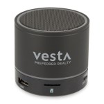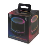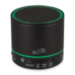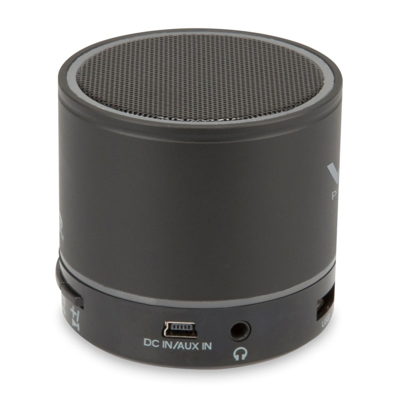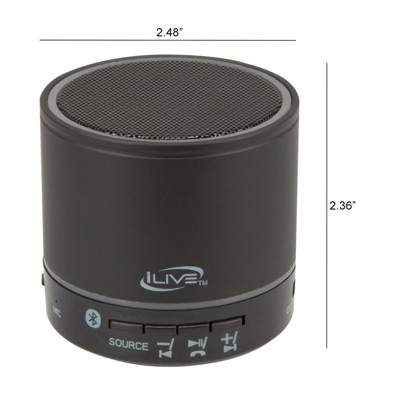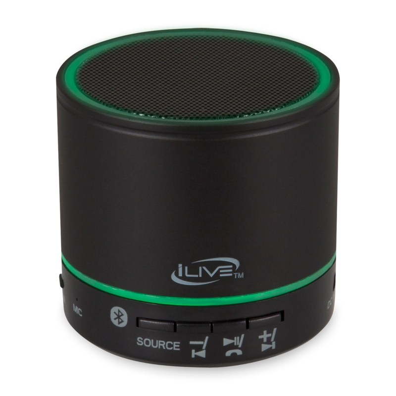 Listen to it all in bold colorful sound that fits in the palm of your hand. Bluetooth wireless with built-in speaker and microphone. Wireless range: 60 feet. Handsfree speakerphone, Mode button with voice command. LED light effects. Mini-USB port for Aux in & battery recharge, 3.5mm headphone jack. Micro SD memory card reader: supports MP3. USB port: supports MP3 file format. Battery life: approx. 1 hour Charge time: 60-70 minutes. Complies with CPSIA, Prop 65.