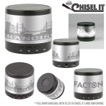 Rechargeable light up Bluetooth speaker. Laser engraving will illuminate when turned on. 3-4 hour play time. Micro USB charging cord included. 2.5″ H x 2.3125″ W