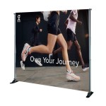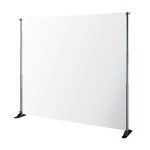 This backdrop stand features a full color graphic made with a top and bottom pole pocket. Includes graphic, frame hardware, and a carry bag. Frame is made of aluminum that adjusts in height and width. Display Hardware and stands have a 1 yr warranty against defects in materials and workmanship when properly assembled and used under normal conditions. 96″ W x 96″ H