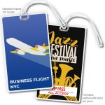 Imprinted Large Luggage Tag made of durable 0.70mm PVC filament silk. Measuring 3×5″, it offers prominent branding and easy visibility for events. 3″ W x 4″ H