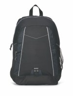 A sporty design and bold colors make this an eye-catching backpack the perfect choice to advertise your brand. Ideal for students, tradeshows and company giveaways, this 600 denier polyester bag features honeycomb textured material, a large main compartment, front zippered pocket with organizer, side mesh pocket, D ring for keys and a front pocket. Carry comfortably using the top grab handle or adjustable, padded shoulder straps. Complies with CPSIA, Prop 65. 7″ W x 17.5″ H x 12″ L