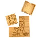 This State Puzzle Coaster Set with Case offers a natural solution for protecting tabletop. These sturdy coasters are crafted from organically-grown Moso® bamboo, an environmentally-friendly material solution that quickly re-grows once harvested. Bamboo is both lightweight & durable a perfect choice for coasters! The coaster set includes a handsome case to store coasters neatly when not in use. The coasters are easy to care for as well: simply wipe them with a damp cloth to clean. Complies with Prop 65. 4″ W x 4″ H