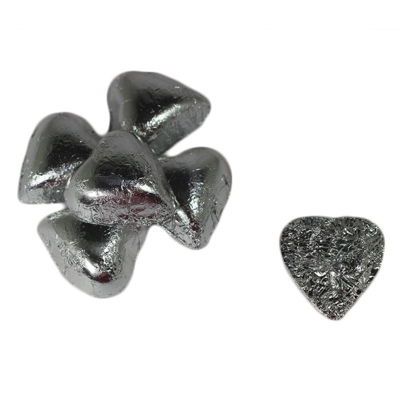 Individually wrapped milk chocolate candy hearts branded with your logo in pink, silver, or red wrapper. *Pink hearts are dark chocolate. Complies with Prop 65. 0.5″ D x 1.32″ W x 1.35″ H