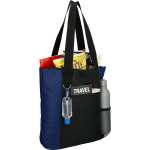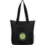 The Infinity Convention Tote has a zippered main compartment with 11.5” drop-handles, making it easy to store and carry your favorite accessories. It also features an open front pocket to provide you with extra storage, plus a side mesh pocket designed to hold your water bottle. This durable PolyCanvas tote bag includes a key ring and has sturdy handles to provide a comfortable grip. 4.75″ D x 14.00″ W x 13.75″ H