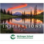 Inspirations Stapled Wall Calendar. Each page has an inspirational quote or verse imprinted within the picture. Stapled; 13 Months. 80# text cover; 70# gloss text pages. Made in the USA. Eco-friendly and Recyclable. Made from 10% post-consumer waste. Complies with Prop 65. 11″ W x 9.625″ H
