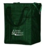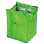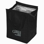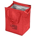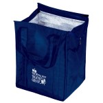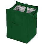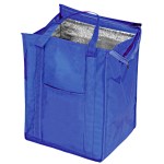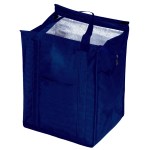 Big Kahuna Insulated Grocery Bag, 11 1/2 W x 15 1/2 H x 9 1/2 gusset. 19 L straps. Bottom Panel Insert 11 1/4 x 9 1/4. Made of 80 GSM polypropylene with aluminum lining insulation keeps food hot or cold. Zipper closure and front pocket. Reinforced carrying handles. 11.5″ W x 15.5″ H x 9.5″ D